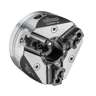 DURO-A — это трёхкулачковый патрон со сквозным отверстием, который зажимается автоматически (гидравлически) станком с ЧПУ. Применяется преимущественно для токарной обработки цилиндрических и дискообразных заготовок.